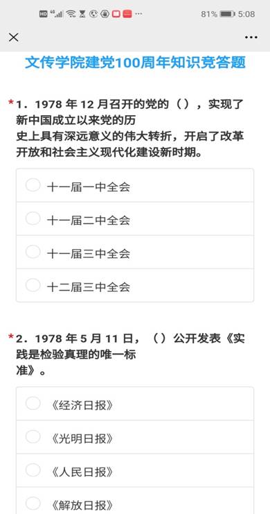 为迎接中国共产党百年华诞,在学院营造“学史明理、学史增信、学史崇德、学史力行”的浓厚氛围,推动全体党员党史学习教育走深走实。文传学院组织全体党员有效利用“碎片时间”,深化理论学习的效果,开展“庆祝建党100周年”线上党史知识竞答活动,以优异成绩向中国共产党百年华诞献礼。