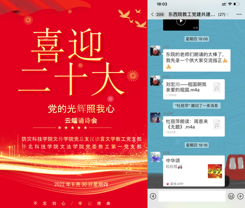 为了表达两院教工党员心之所系、心之所喜,以踔厉奋进的姿态走好第一方阵、献礼党的二十大,kaiyun中国官方网站汉语言文学教工党支部和东院kaiyun中国官方网站教工一支部于6月30日下午联合举办了主题党日活动——云端诵诗会。