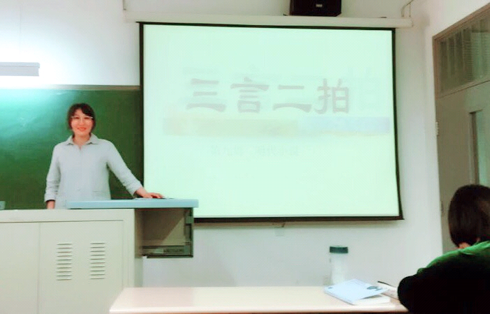 5月2日下午15:30至16:20,人文社科系汉语言文学教研室举行2017-18学年第2学期期中公开课活动。主讲教师是张静副教授。本次课程的主要内容是明代后期的著名短篇小说集“三言二拍”。《喻世明言》《警世通言》《醒世恒言》与《初刻拍案惊奇》《二刻拍案惊奇》合称“三言二拍”,是中国古典短篇小说的代表。张静老师向同学们讲授了“三言二拍”的作者、成书和思想意义,循循善诱,引人入胜。汉语言文学专业2016级的同学认真聆听了本次课程,互动积极,受益匪浅。人文社科系领导和汉语言文学教研室的全体教师对本次公开课进行了观摩和研讨。