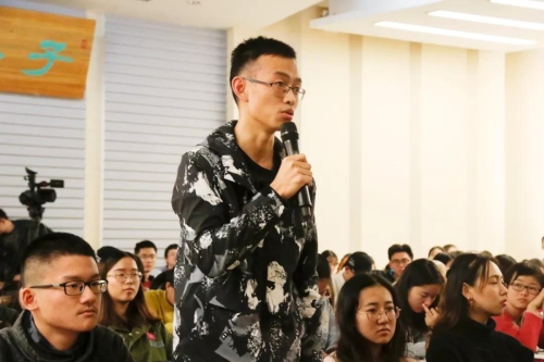 在讲座的最后,马晓勇先生与同学们进行了积极的交流,学生针对语言表达提出了许多问题,马晓勇先生很耐心地根据自己经验予以解答,还给同学推荐了一些播音方面规范化的训练方法,另外,马先生针对声音和美学进行了深刻的阐释。本次讲座,同学们对语言的艺术之美有了更深刻的认识。