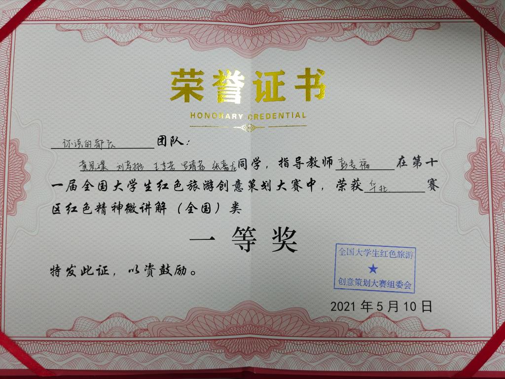 5月29日,第十一届全国大学生红色旅游创意策划大赛圆满闭幕, 本次大赛由文化和旅游部资源开发司、浙江省嘉兴市委市政府、北京第二外国语学院主办,以“青春追寻红色路 不忘初心跟党走”为主题,庆祝建党100周年,落实爱国主义教育,固本培元、凝心铸魂。