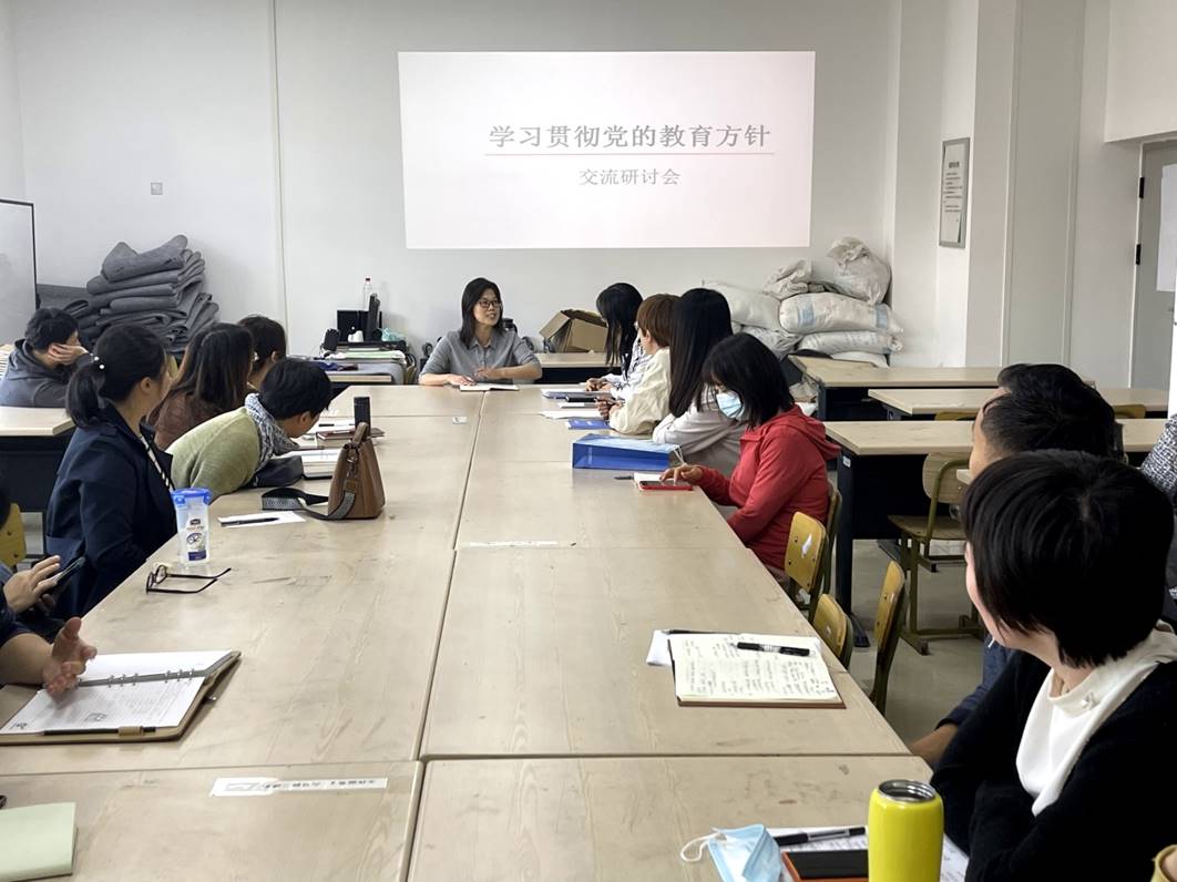 研讨会上,侯英同志对党的教育方针进行深入解读,阐述党的教育方针的内涵和要求。她谈到,党的教育方针是一个时期党和国家有关教育事业发展的总体性指导方针和纲领性政策表述。贯彻落实党的教育方针是党和国家对于广大教育工作者提出的基本要求,也是确保教育工作正确价值方向的重要举措。随后全体教师结合工作实际进行了深入思考与交流。