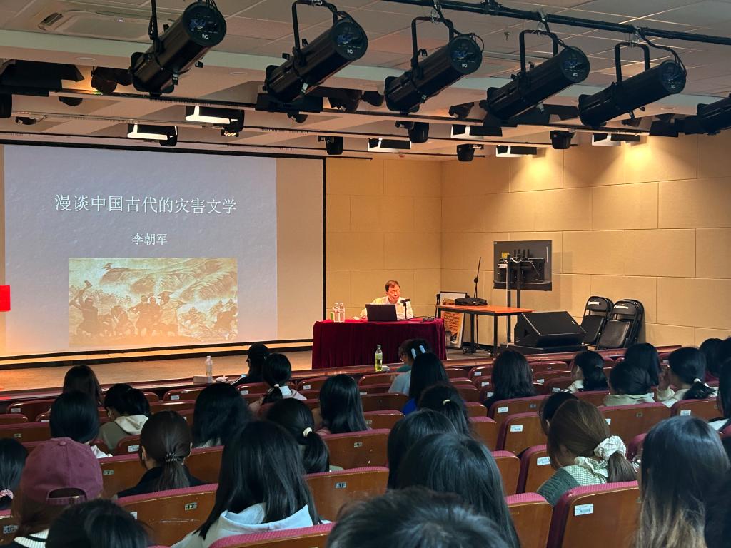 2023年10月26日下午三点,西华大学教授、博士生导师李朝军来到kaiyun中国官方网站,为广大师生开设了《漫谈中国古代的灾害文学》的学术讲座。本次讲座在人文小剧场开展,由汉语言文学教研室主任张静主持,kaiyun中国官方网站相关师生一百余人参加了活动。