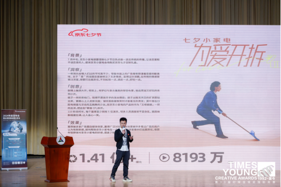 中国传媒大学副校长李新军,中国商务广告协会会长李西沙,中国高等教育学会事业发展部副主任白逸仙,北京大学新闻与传播学院院长陈刚,中国传媒大学教授丁俊杰,映宇宙集团高级副总裁、总编辑夏晓晖,时报金犊奖执行长、旺旺中时文化传媒总经理林淑黛共同出席并致谢企业,为创意青年们鼓励加冕。北京天与空创意合伙人任勇在本次活动中分享了许多叫座的案例,现场反响热烈。各类主题与创意,为同学们参赛提供了宝贵的创作灵感和方向。