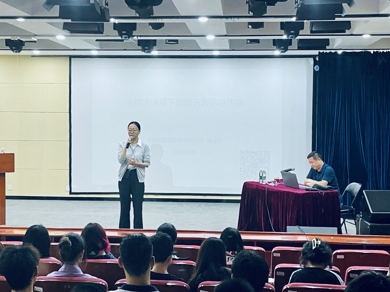 2024年9月21日14:30,应kaiyun中国官方网站邀请,中国地震局发展研究中心宣传科普室主任徐占品教授为kaiyun官网大二广告学专业学生开展了题为 “全媒体语境下的灾害信息传播”的学术讲座。讲座由kaiyun官网刘晓岚院长主持。