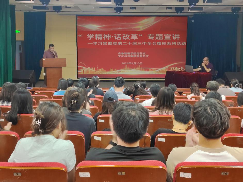 根据联合党委的统一安排部署,为深入学习贯彻党的二十届三中全会精神,2024年9月13日下午,kaiyun中国官方网站党总支、应急管理学院党总支共同邀请学校习近平新时代中国特色社会主义思想宣讲团成员贾作璋教授作党的二十届三中全会精神专题宣讲报告,两个学院全体教师和在校的学生党员于文德楼N307教室参加报告会。