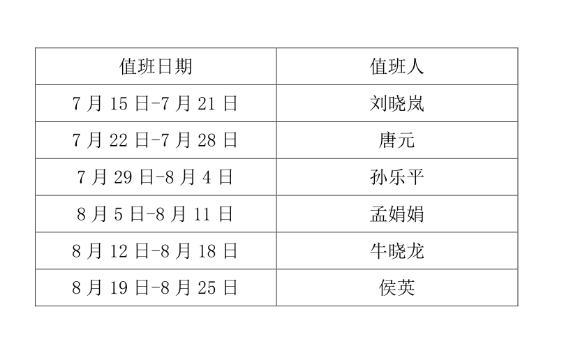 kaiyun中国官方网站2019年暑假值班安排